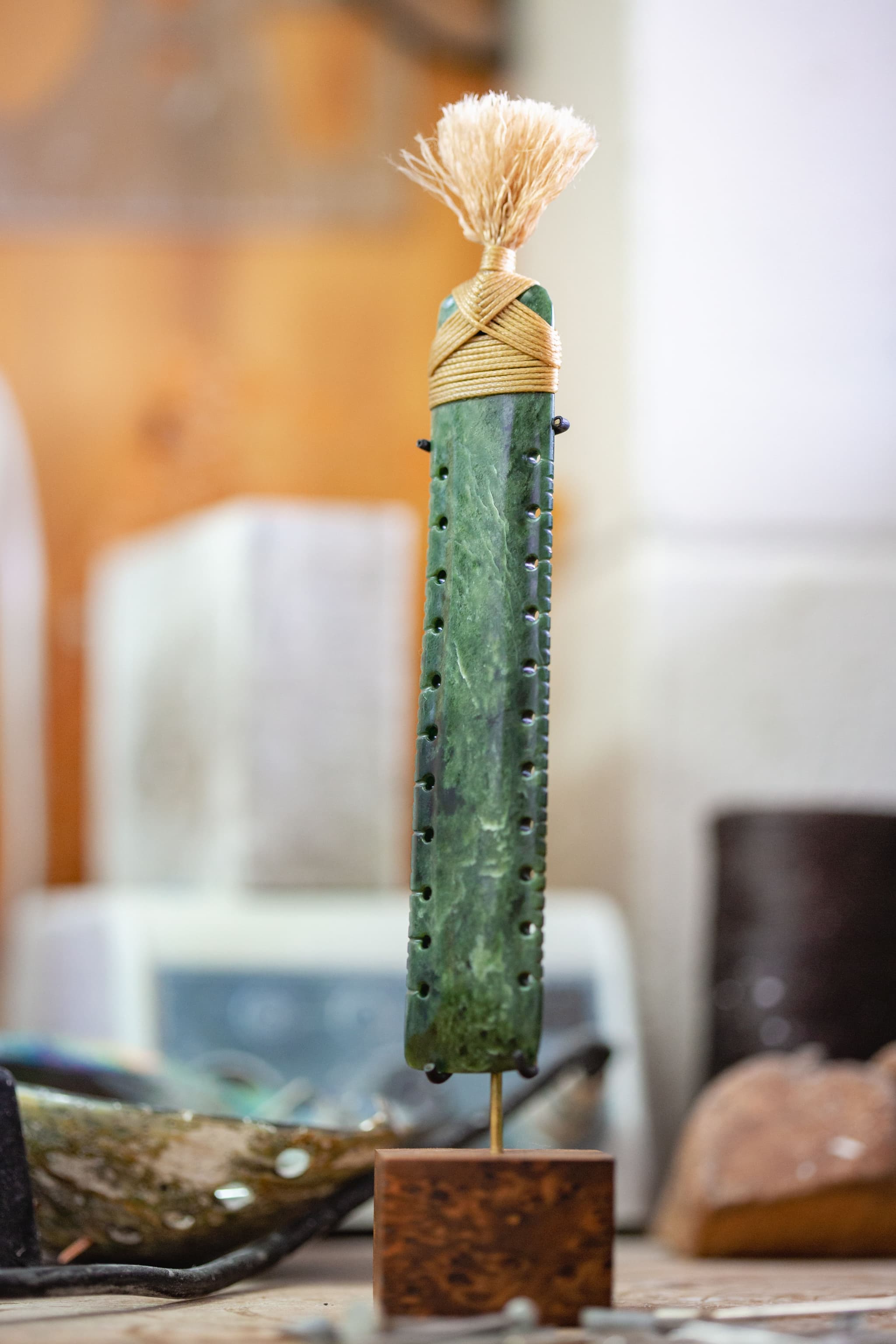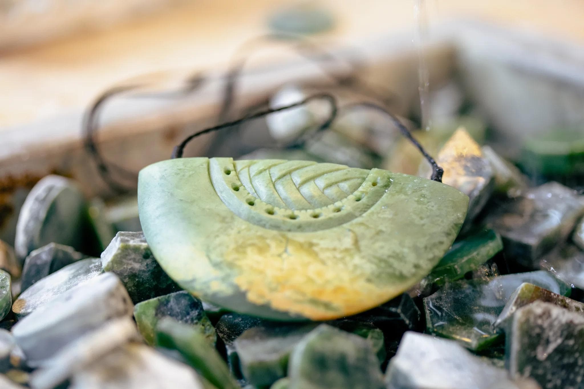 Many of our artists look to customary surface designs and patterns used within different Māori art forms to connect with mātauranga (Māori knowledge) and to inform and inspire their contemporary pounamu designs.